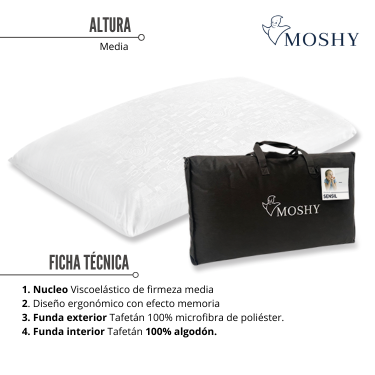 Almohada Moshy Viscoelástica Sensil de Altura Media con Tacto Sedoso