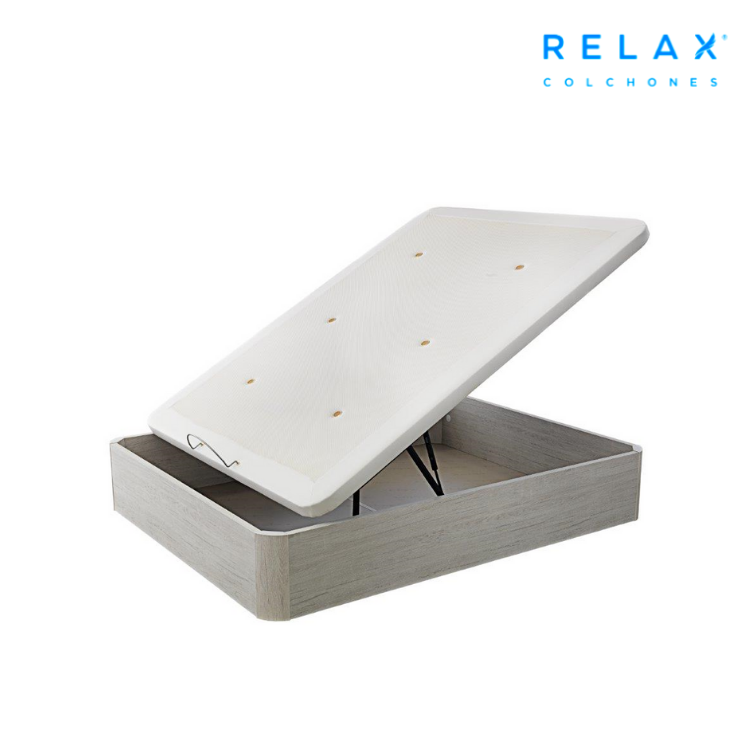 El nuevo canapé o arcón abatible EVOQUE de Relax cuenta con una estructura de madera recubierta de melanina en acabado mate exclusivo de 30 mm de grosor para proporcionar una estabilidad y robustez óptima, con unas esquinas redondeadas y reforzadas. La tapa sueprpuesta está tapizada con contorno de polipiel y tejido 3D para una mayor aireación del colchón gracias a sus tres válvulas de ventilación en ancho inferior y seis en su ancho superior. La tapa reforzada está hecha de tubo de acero con cinco travesaños de refuerzo para evitar su hundimiento con el paso del tiempo, y además, su tejido 3D permite ser anti deslizamiento y anti moho.