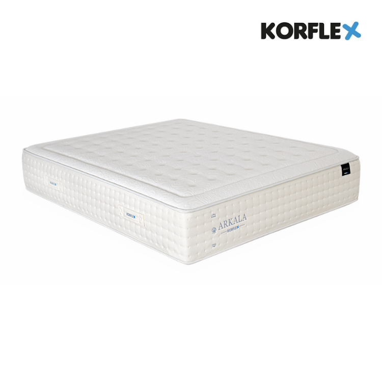 El colchón Arkala de Korflex cuenta con doble núcleo de 3.704 nano muelles ensacados que le proporcion una adaptabilidad al cuerpo perfecta junto con otra combinación de espuma Foam Support. También posee un núcleo principal con núcleo de 1.222 muelles ensacados de 18 cm, que le proporcionan una independencia de lechos en camas matrimoniales sin interferir movimientos a la pareja y mejorar la durabilidad del colchón junto con el refuerzo en HR del perímetro.