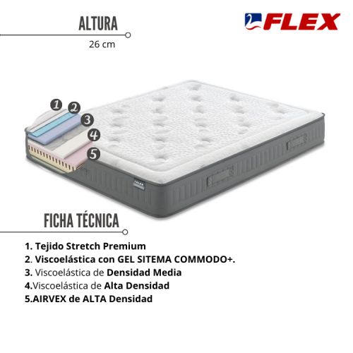 Colchón Viscoelástico Flex Cosmic con 4 capas de máxima adaptabilidad