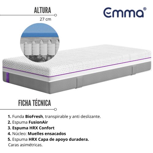 Altura del colchón de 27 cm (+/- 1 cm).colchón emma hybrid premium