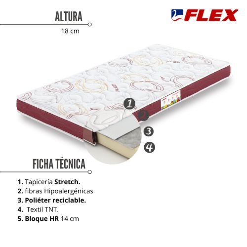 3 AÑOS de garantía en tu colchón JUNIOR ADAPT A de FLEX: Cumple con las medidas de seguridad e higiene en sus tejidos y materiales en todos sus colchones. Cuenta con garantía por cualquier problema de fabricación, nunca por su uso y su desgaste normal del colchón. También cubre defectos físicos que provoquen una hendidura visible de más de 3 cm en sus materiales. La garantía no cubre si ha descansado en una superficie en mal estado o cualquier cambio que afecten al gusto del cliente.
