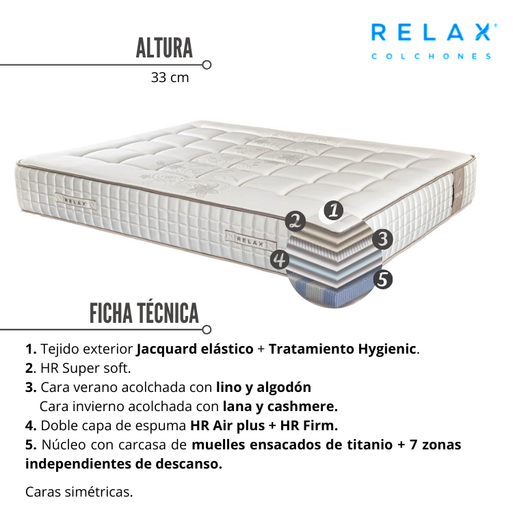 Colchón Sublime Relax de Muelles de Titanio 7 zonas de descanso.