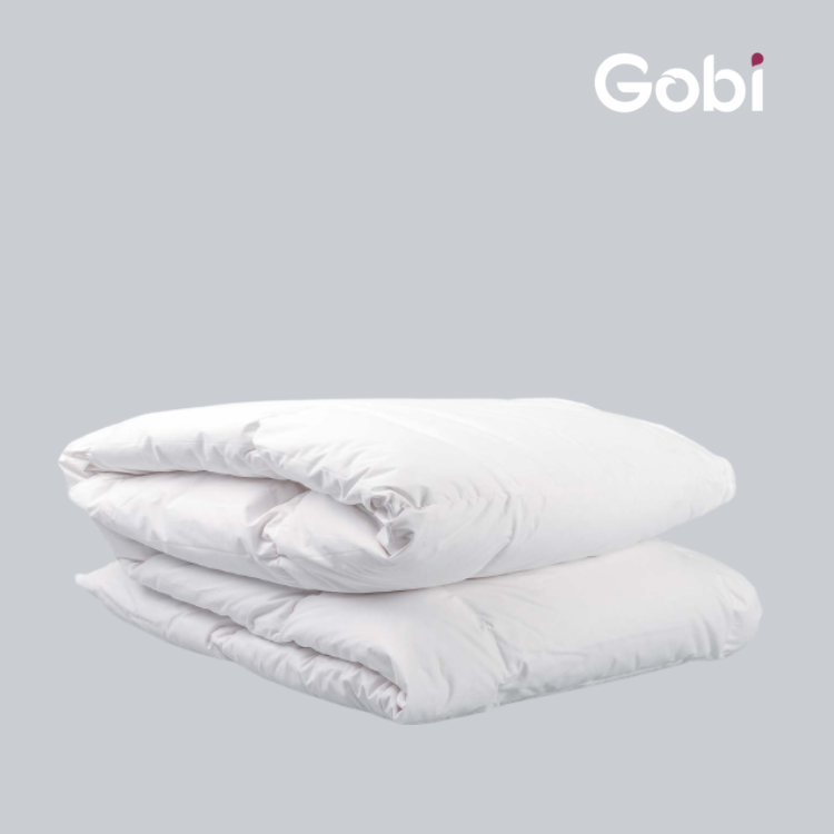 El edredón Velvet de Gobi se compone de un 90% de plumón Europe y un 10% de plumas pequeñas del mismo animal, aportando un aislamiento generoso. Además, está confeccionado con microfibra MicroCotton con tratamiento Down Proof, una tela fina y suave que incorpora fibras huecas de extrema ligereza, asegurando una regulación equilibrada de la temperatura y comodidad durante toda la noche.