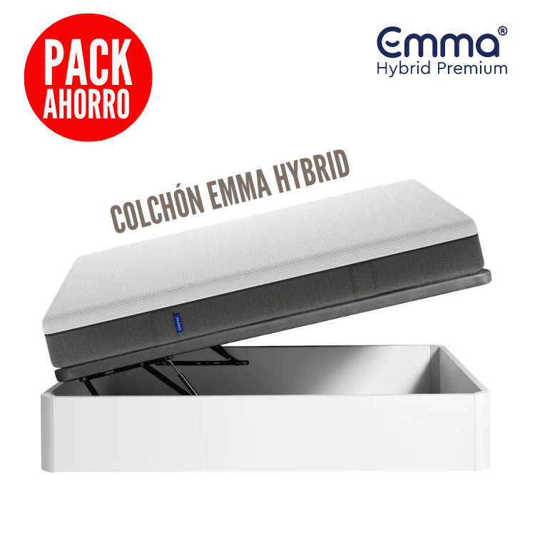 Pack Ahorro Colchón Emma Hybrid Premium + Canapé Abatible de Madera con Tapa Reforzada